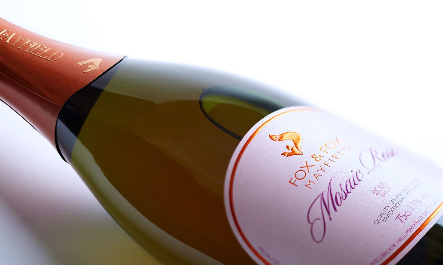 Mosaic Rosé is our lovely summer time fizz, blended from both vineyards with a slightly higher percentage of Pinot noir than the Mosaic Brut. It is the perfect easy drinking rosé, with luscious ripe strawberry flavours, balanced by a mildly citrusy finish. It is a particularly pretty salmon pink colour in the glass, perfect for picnics or sipping with friends.